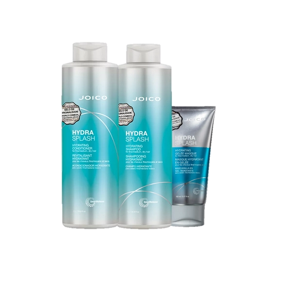 Kit de tratamento para cabelos finos e médios, ressecados ou desvitalizados. Kit Joico Hydra Splash proporciona a medida ideal de hidratação sem adicionar peso aos fios. Kit Joico Hydra Splash traz uma fórmula que limpa os fios de forma suave e sem ressecar, além de restaurar a umectação, brilho e maciez, deixando sensação de leveza Contém Joico Hydra Splash - Shampoo 1L: possui uma fórmula com espuma deliciosa que remove os resíduos sem retirar a hidratação natural dos fios. Além disso, proporciona ação hidratante sem pesar nos fios. Joico Hydra Splash- Condicionador 1L: desembaraça e repõe a hidratação e elasticidade com uma fórmula leve que não deixa o cabelo pesado, mesmo os fios mais finos. Joico Hydra Splash- mascara 150ml: possui uma fórmula com textura gel-creme que promove hidratação leve e ao mesmo tempo poderosa. Desembaraça até os fios mais finos, reduz o frizz e deixa o cabelo restaurado, brilhante e com toque suave. Conselho de Aplicação Aplique o shampoo nos cabelos molhados, massageando suavemente até formar espuma. Enxágue completamente. Repita a aplicação.Passe o condicionador nos cabelos limpos e úmidos. Deixe agir por 1 minuto. Enxágue a seguir aplique a mascara nos cabelos úmidos e limpos, uma pequena quantidade, por toda extensão dos fios exceto no couro cabeludo. Pause por até 5 minutos e enxágue totalmente. Uso semanal ou conforme a necessidade.