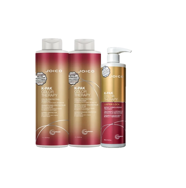 Kit de tratamento para cabelos coloridos. Kit Joico K-PAK Color Therapy Smart Release promove tratamento intensivo para garantir cor vibrante, protegida e duradoura. Kit Joico K-PAK Color Therapy Smart Release conta com fórmula que limpa suavemente, hidrata, nutre, auxilia na proteção da cor e restauração dos fios, além de proporcionar brilho intenso, melhorar a elasticidade e deixar os fios mais fortes. Contém Joico K-PAK Color Therapy Smart Release - Shampoo 1L: limpa suavemente, auxilia na proteção da cor e restauração dos fios. Joico K-PAK Color Therapy Smart Release - Condicionador 1L: reverte os danos causados pelo tempo, protege a cor e ilumina, hidrata e condiciona intensamente, além de garantir maleabilidade, força e elasticidade. Joico K-PAK Color Therapy Luster Lock Smart Release - Máscara Capilar 500ML: máscara de tratamento profundo e instantâneo para cabelos coloridos. Nutre, repara, hidrata e protege a cor dos cabelos, além de garantir brilho intenso. Conselho de Aplicação Aplique a quantidade necessária de shampoo de acordo com o comprimento dos fios. Massageie até obter espuma e enxágue bem. Repita a aplicação caso seja necessário. Passe a máscara nos cabelos limpos e úmidos. Pause de 2 a 5 minutos e enxágue. Pode ser usada como pré-shampoo: aplique nos cabelos secos, pausando de 2 a 5 minutos. Enxágue e lave com shampoo e condicionador. Aplique uma pequena quantidade de condicionador sobre o comprimento e as pontas. Deixe agir de 1 a 2 minutos e, por fim, enxágue completamente.