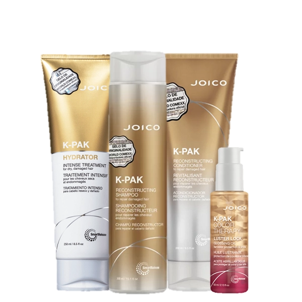 Joico K Pak Repair Damaged Trio Home Care contém: 1 Shampoo K Pak Repair Damaged 1 Condicionador K Pak Repair Damaged 1 Tratamento Intenso K Pak 1 Oleo Capilar K Pak Color Therapy 1 Shampoo K Pak Repair Damaged Restaura a força dos fios danificados. Shampoo para cabelos danificados que restaura a elasticidade do cabelo danificado. Aplicação / Uso Aplicar nos cabelos molhados, massageando suavemente até formar uma espuma. Enxágue completamente. Se necessário, repita a aplicação. Uso diário durante o banho. 1 Condicionador K Pak Repair Damaged Hidrata e fortalece os fios. Condicionador para cabelos danificados ricamente hidratante. Fortalece os fios e desembaraça cabelos secos. Maciez, vivacidade, brilho e movimento natural. Aplicação / Uso Aplicar nos cabelos molhados, massageando suavemente até formar uma espuma. Enxaguar. Uso diário durante o banho. Máscara Joico K-PAK Intense Hydrator Smart Release Máscara Joico K-PAK Intense Hydrator Smart Release apresenta um tratamento intenso que que repõe a hidratação perdida nos fios, repara os danos e proporciona mais brilho. Além disso, sua fórmula sela as cutículas, reduz o frizz, garante fios macios e sedosos, e devolve a maleabilidade e elasticidade dos cabelos. Conselho de Aplicação Aplique nos cabelos limpos e úmidos. Pause por 5 minutos e enxágue completamente. Joico K-PAK Color Therapy Luster Lock Smart Release Óleo capilar para cabelos coloridos ou com mechas. Joico K-PAK Color Therapy Luster Lock Smart Release protege a cor, ilumina intensamente e garante maciez. O Óleo capilar Joico K-PAK Color Therapy Luster Lock Smart Release foi especialmente desenvolvido para tornar a sua rotina de cuidados capilares muito mais prática, segura e eficiente. Com formulação poderosa e ingredientes de alta performance, o produto é ideal para manter a sua coloração viva e radiante por muito mais tempo. Conselho de Aplicação Aplique de 1 a 2 doses de leave-in sobre os cabelos úmidos. Em seguida, penteie bem e finalize com o uso do secador. Nossos Experts Ensinam Multifuncional, o produto pode ser utilizado também sobre o fios secos. Nesse caso. basta tomar cuidado para não aplicá-lo próximo à raiz.