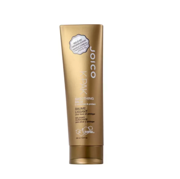 Bálsamo suavizante para cabelos danificados. Joico K-Pak Style Smoothing Balm fortalece e protege os fios, reestruturando e hidratando profundamente. Ele sela as escamas da fibra capilar, para que ela fique revitalizada e brilhante. Ao ser ativado pelo calor Joico K-Pak Style Smoothing Balm proporciona um efeito liso temporário. Também elimina o frizz e protege dos eventuais danos causados pelo uso de ferramentas térmicas. Keratin Silicone Complex: uma combinação exclusiva de queratina e silicone que devolve a umidade, sela as cutículas e fortalece os fios. Complexo Peptídico Bio-Avançado: peptídeo de alta compatibilidade como o cabelo que penetra no interior da fibra capilar e restaura sua saúde desde o interior, deixando os fios muito mais fortes, saudáveis e brilhantes. Obs: A textura deste produto pode variar de acordo com temperatura, transporte ou acondicionamento. Ele pode passar a variar seu aspecto do cremoso para o fluído ou "talhado". O fabricante ressalta que este fato não retira ou modifica a qualidade e propriedades de tratamento do produto.Joico K-PAK Style Smoothing Balm - Bálsamo 200ml