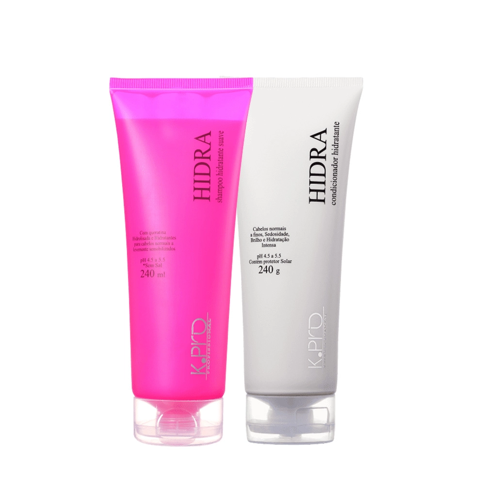 Este Kit Contém K.Pro Hidra Profissional - Shampoo sem Sal 240ml: hidratante de uso diário, para todos os tipos de cabelo, especialmente os sensibilizados. K.Pro Hidra Shampoo sem Sal limpa suavemente e não pesa nos fios. Ele tem fórmula sem sal que devolve a força e estrutura aos fios danificados sendo ideal para cabelos que passaram por processos químicos. K.Pro Profissional Hidra - Condicionador 240g: para cabelos normais a finos, tratados quimicamente ou não. K.Pro Hidra Condicionador Hidratante hidrata e nutre profundamente os fios, repondo a camada ácida natural de cabelos ressecados ou danificados. K.Pro Hidra Condicionador Hidratante contém filtros UV. Cabelos macios, hidratados, nutridos e com muito brilho! Conselho de aplicação Shampoo: aplique nos cabelos molhados, massageie fazendo espuma e enxague. Repita se necessário.K.Pro Profissional Hidra Duo (2 produtos)