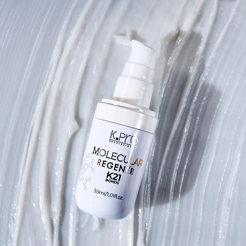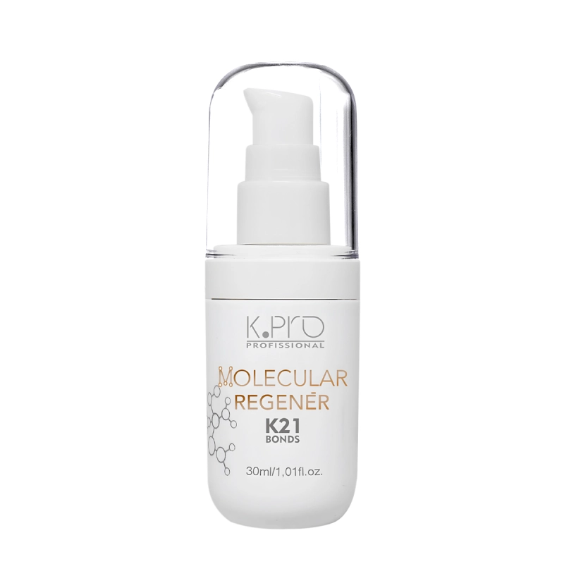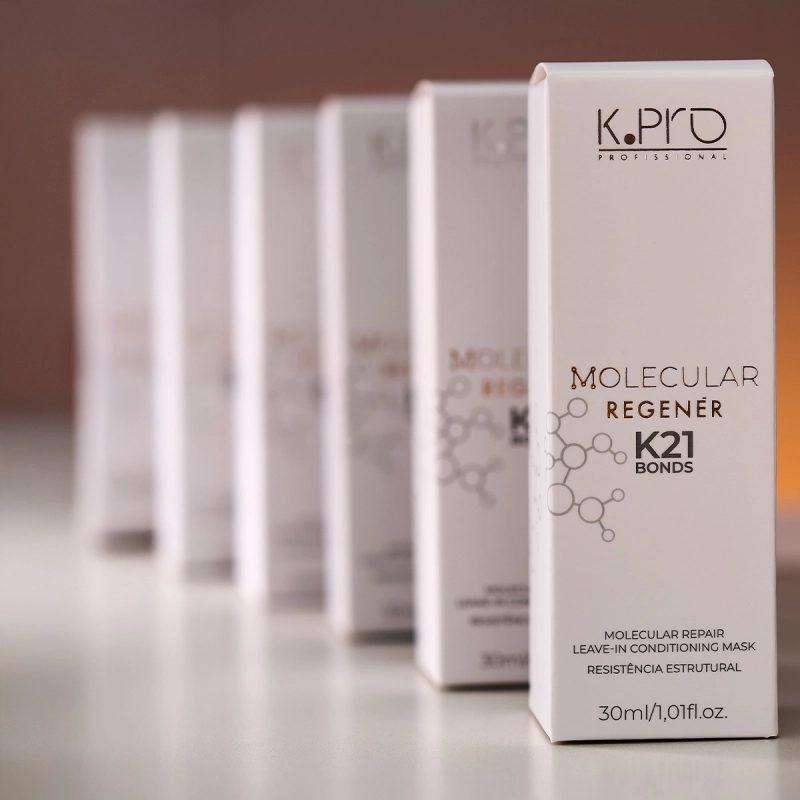 K.Pro Profissional Molecular Regenér K21 Bonds - Reconstrução Profunda e Brilho Reconstrói profundamente cabelos danificados, devolvendo força, brilho e maciez. Com peptídeos, niacinamida e óleo de palmiste, regenera a fibra capilar, protege contra o calor e mantém os fios leves e saudáveis desde a primeira aplicação. Conselho de Aplicação