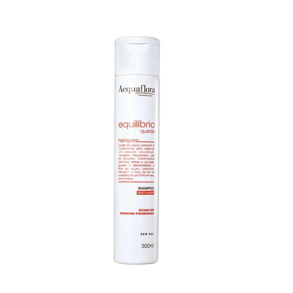 Acquaflora Equilíbrio Queda Raiz Oleosa Shampoo - 300ml: auxilia na redução da queda com o controle da produção oleosa pelo couro cabeludo sem ressecar os fios