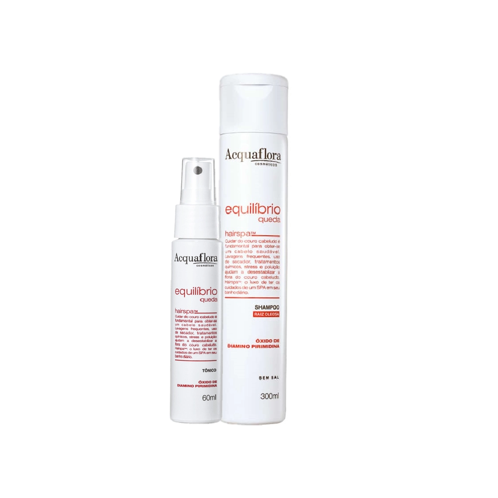 Kit de tratamento controle da queda indicado para cabelos com raiz oleosa. Controla a queda de forma eficaz. Desembaraça instantaneamente e hidrata os cabelos. Recuperando o bem estar e a saúde do couro cabeludo. Este Kit Contém Acquaflora Equilíbrio Queda Raiz Oleosa Shampoo - 300ml: Shampoo controle da queda indicado para cabelos com raiz oleosa. Limpa delicadamente os cabelos enquanto auxilia no controle da queda deixando o couro cabeludo saudável, sem ressecar os fios. Cuidado e saúde que traz equilíbrio a seus cabelos. Acquaflora Tonico Equilibrio Queda: Tônico capilar para o controle da queda. É um sistema de tratamento progressivo, auxilia na restauração do volume e a vitalidade dos cabelos. Previne a queda, e estimula o crescimento dos fios. Cuidado e saúde que traz equilíbrio a seus cabelos. Como Usar Conselho de Aplicação - Distribua uma pequena quantidade do shampoo por todo cabelo úmido e massageie suavemente até a formação de espuma. Em seguida, enxágue completamente. - Com o couro cabeludo limpo e seco, aplique o tônico diretamente na região. Faça uma massagem suave. Não enxágue. Kit Acquaflora Equilibrio Queda Raiz Oleosa Tratamento Capilar (2 Produtos)