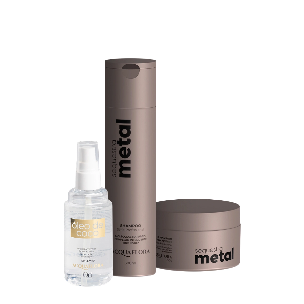 Kit Acquaflora Sequestra Metal Shampoo Tratamento e Óleo de Coco (3 produtos)