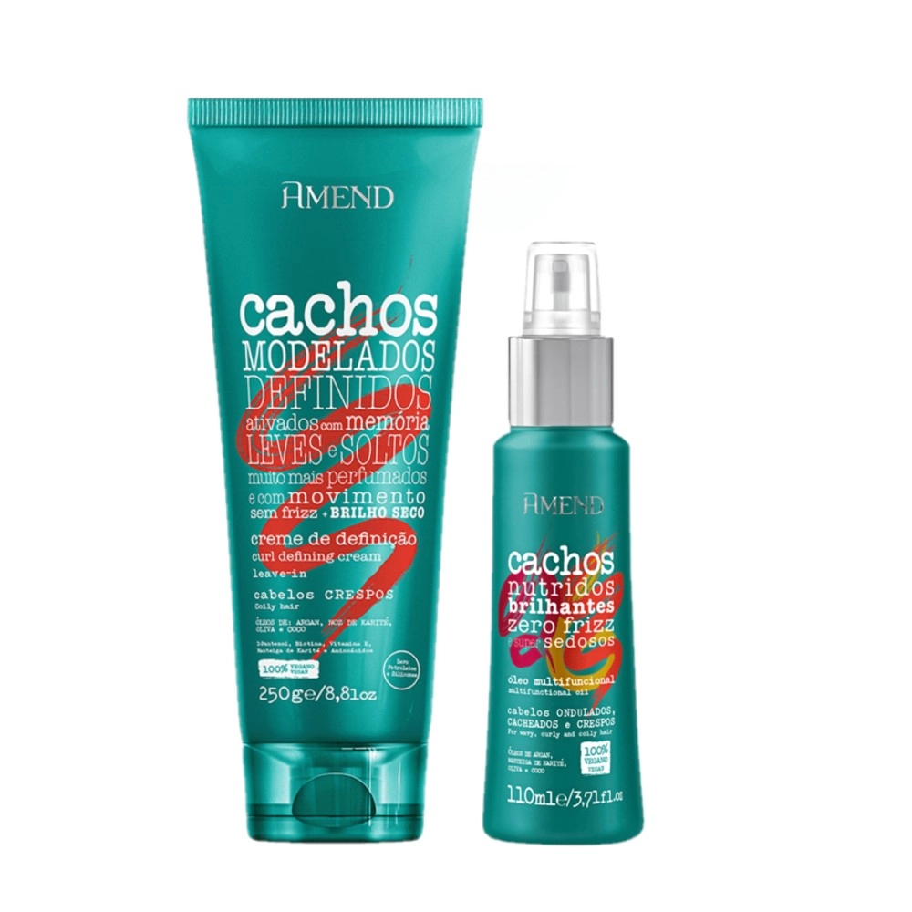 Kit Amend Crespos Cachos Leave-in Nutridos Brilhantes Oléo Multifuncional (2 Produtos)