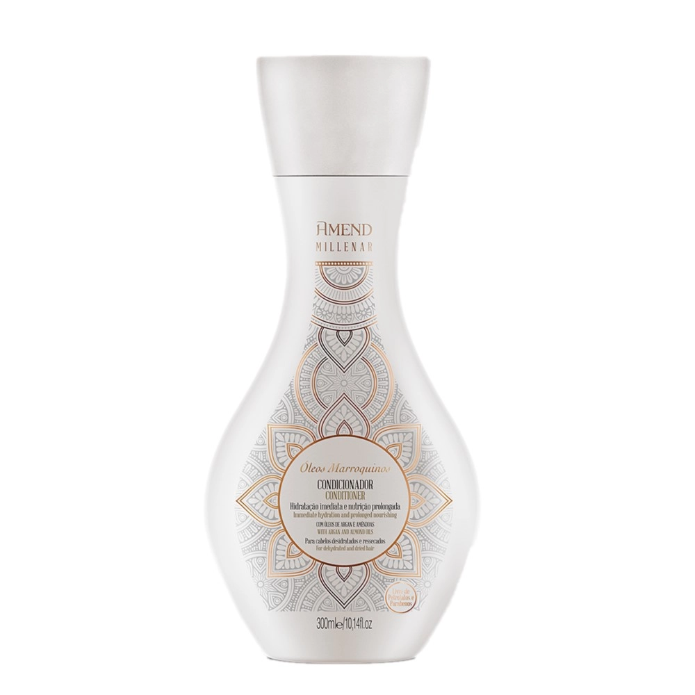 Esse Kit Contém Amend Millenar Óleos Marroquinos - Shampoo 300ml: nutre, hidrata e suaviza a fibra capilar enquanto limpa suavemente. Amend Millenar Óleos Marroquinos - Condicionador 300ml: combate a desidratação ao nutrir o fio, além de facilitar o pentear. Conselho de Aplicação Shampoo: aplicar nos cabelos molhados, massageando os fios com as pontas dos dedos. Enxágue e repita a operação. Condicionador: depois de lavar com shampoo, espalhe o condicionador nos cabelos úmidos. Evite aplicar na raiz. Massageie os fios suavemente e enxágue bem. Kit Amend Millenar Óleos Marroquinos Duo (2 Produtos)