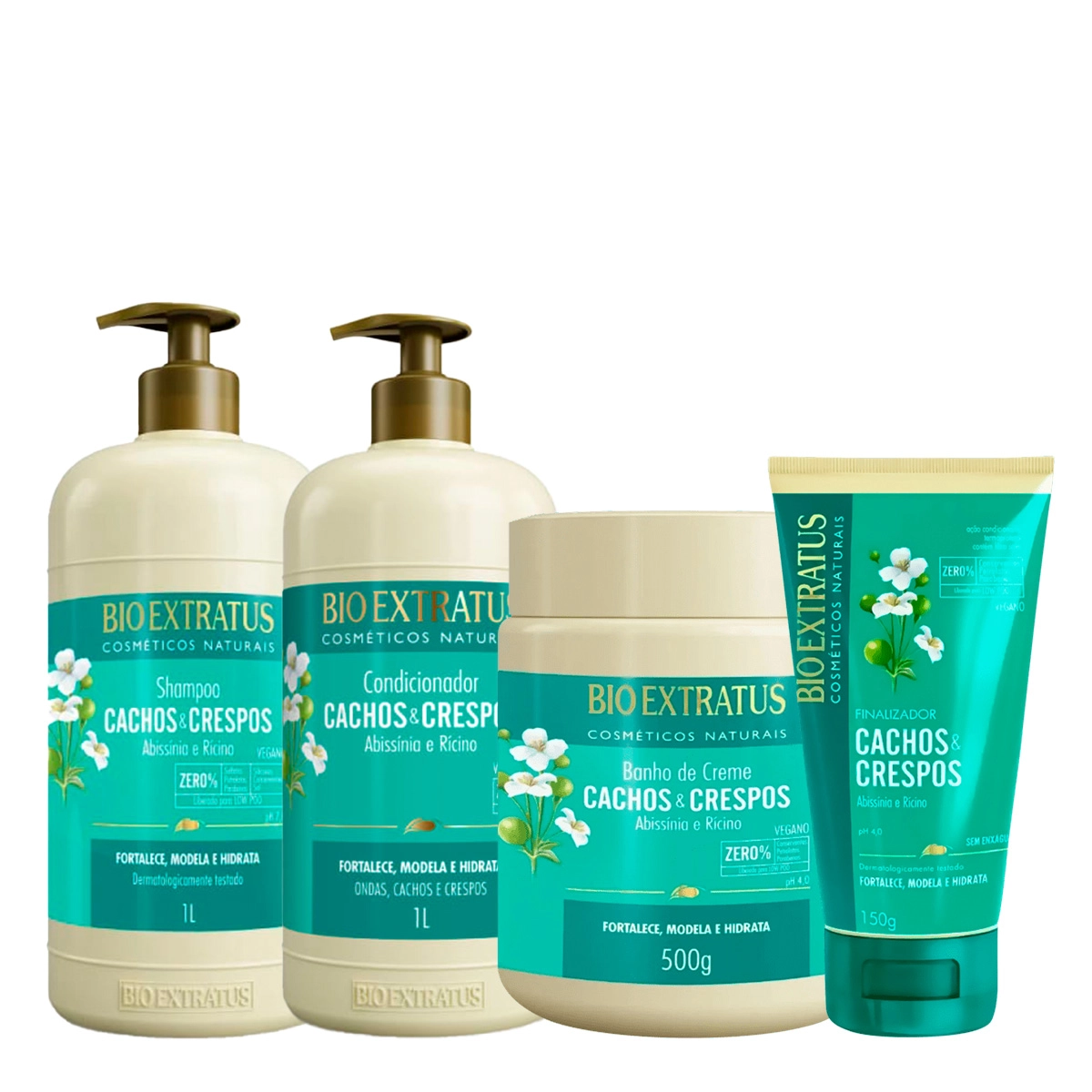 Kit Bio Extratus Cachos & Crespos Abissínia e Rícino Shampoo Condicionador Máscara e Finalizador P (4 produtos)