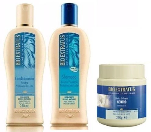 DESCRIÇÃO: Bases neutras com ingredientes suaves, enriquecidas com proteínas naturais do leite. Limpa delicadamente os fios e promove um tratamento hidratante que confere proteção, maciez e realça o brilho natural do cabelo.AÇÃO/ATIVOS: A proteína liga-se aos fios de cabelo, proporcionando grande ação umectante e hidratante.MODO DE USAR: Aplique no cabelo molhado, massageando suavemente sem esfregar os fios. Enxágue. Use diariamente. DESCRIÇÃO: Bases neutras com ingredientes suaves, enriquecidas com proteínas naturais do leite. Limpa delicadamente os fios e promove um tratamento hidratante que confere proteção, maciez e realça o brilho natural do cabelo.AÇÃO/ATIVOS: A proteína liga-se aos fios de cabelo, proporcionando grande ação umectante e hidratante.MODO DE USAR: Para uso diário, deve ser usado após o shampoo. Na hidratação semanal, aplique após o banho de creme, massageando suavemente. Para maior absorção dos ativos, deixe agir por alguns minutos. Enxágue. Bases neutras com ingredientes suaves, enriquecidas com proteínas naturais do leite. Limpa delicadamente os fios e promove um tratamento hidratante que confere proteção, maciez e realça o brilho natural do cabelo. INDICAÇÃO: Todos os tipos de cabelo . FUNÇÃO: Limpar, hidratar e promover um balanço de nutrientes nos cabelos. Tratamento hidratante. Desenvolvido à base de proteínas do leite que conferem proteção e maciez aos fios. Realça o brilho natural do cabelo. RESULTADOS E BENEFÍCIOS: Deixa os cabelos hidratados, saudáveis, macios e brilhantes. MODO DE USO: Aplique massageando mecha a mecha e deixe agir por 10 minutos. Para intensificar o tratamento, use touca de hidratação. Enxágue.Bio Extratus Neutro Shampoo 250ml