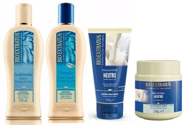 DESCRIÇÃO: Bases neutras com ingredientes suaves, enriquecidas com proteínas naturais do leite. Limpa delicadamente os fios e promove um tratamento hidratante que confere proteção, maciez e realça o brilho natural do cabelo.AÇÃO/ATIVOS: A proteína liga-se aos fios de cabelo, proporcionando grande ação umectante e hidratante.MODO DE USAR: Aplique no cabelo molhado, massageando suavemente sem esfregar os fios. Enxágue. Use diariamente. DESCRIÇÃO: Bases neutras com ingredientes suaves, enriquecidas com proteínas naturais do leite. Limpa delicadamente os fios e promove um tratamento hidratante que confere proteção, maciez e realça o brilho natural do cabelo.AÇÃO/ATIVOS: A proteína liga-se aos fios de cabelo, proporcionando grande ação umectante e hidratante.MODO DE USAR: Para uso diário, deve ser usado após o shampoo. Na hidratação semanal, aplique após o banho de creme, massageando suavemente. Para maior absorção dos ativos, deixe agir por alguns minutos. Enxágue. DESCRIÇÃO: Bases neutras com ingredientes suaves, enriquecidas com proteínas naturais do leite. Limpa delicadamente os fios e promove um tratamento hidratante que confere proteção, maciez e realça o brilho natural do cabelo.AÇÃO/ATIVOS: A proteína liga-se aos fios de cabelo, proporcionando grande ação umectante e hidratante.MODO DE USAR: Pode ser usado diariamente no cabelo úmido. Distribua ao longo de todo o comprimento, principalmente nas pontas e regiões mais danificadas. Não enxágue. Penteie normalmente.ESTE ANÚNCIO CONTÉM: 01 Bio Extratus Neutro Finalizador 150g Bases neutras com ingredientes suaves, enriquecidas com proteínas naturais do leite. Limpa delicadamente os fios e promove um tratamento hidratante que confere proteção, maciez e realça o brilho natural do cabelo. INDICAÇÃO: Todos os tipos de cabelo . FUNÇÃO: Limpar, hidratar e promover um balanço de nutrientes nos cabelos. Tratamento hidratante. Desenvolvido à base de proteínas do leite que conferem proteção e maciez aos fios. Realça o brilho natural do cabelo. RESULTADOS E BENEFÍCIOS: Deixa os cabelos hidratados, saudáveis, macios e brilhantes. MODO DE USO: Aplique massageando mecha a mecha e deixe agir por 10 minutos. Para intensificar o tratamento, use touca de hidratação. Enxágue.Bio Extratus Neutro Shampoo 250ml
