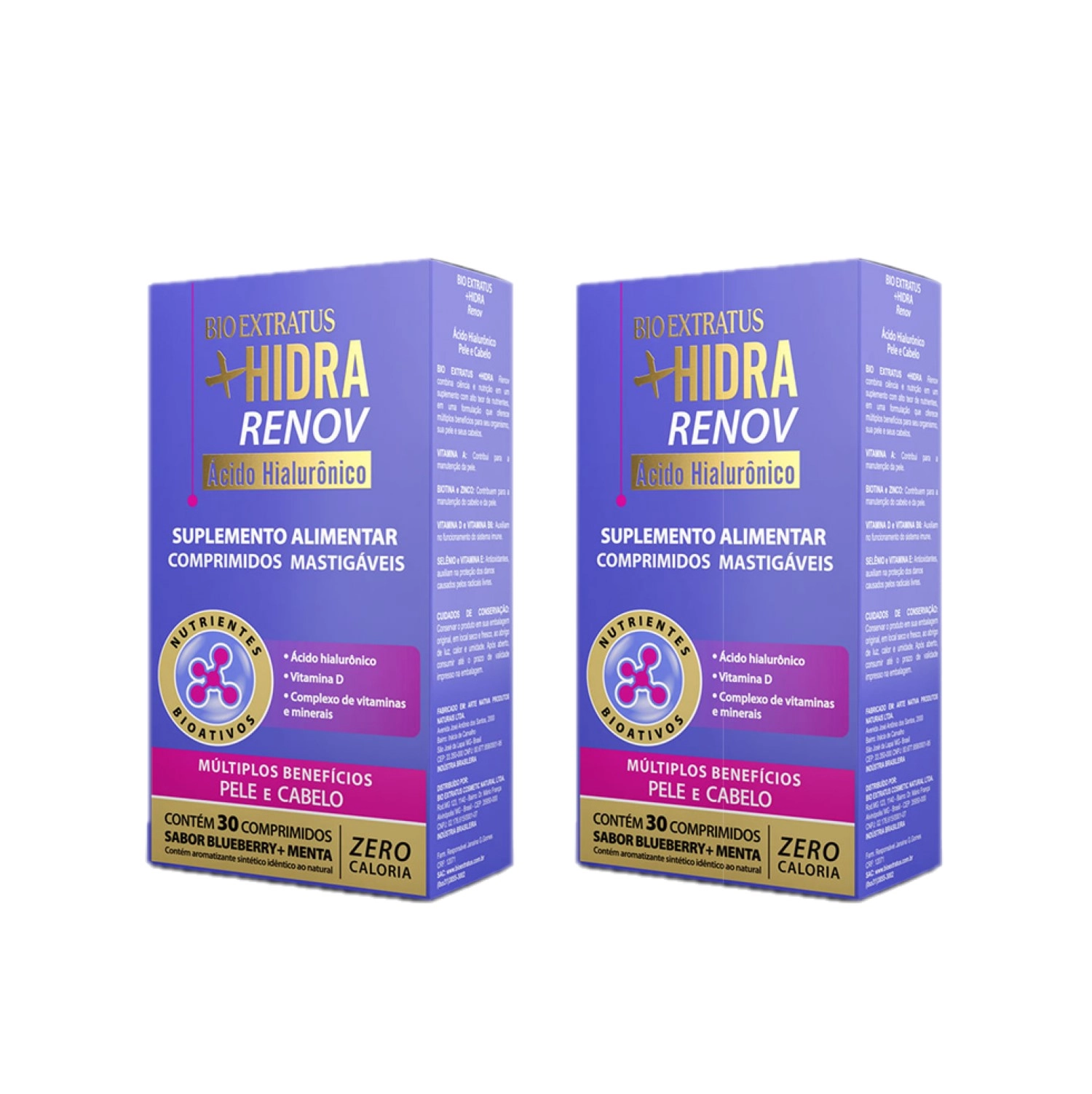Este kit contém: Bio Extratus Suplemento +Hidra – 30 comprimidos (2 unidades): combina ciência e nutrição em um suplemento com alto teor de nutrientes, em uma formulação benéfica para seu organismo, sua pele e seus cabelos. Contém: Conselho de Aplicação 1 comprimido por dia, preferencialmente à noite, próximo ao horário de dormir. Caixa com 30 comprimidos mastigáveis.Kit Bio Extratus Suplemento +Hidra (2 unidades)