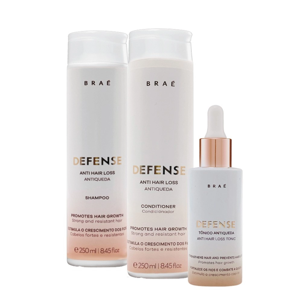 Kit Braé Anti Hair Defense Loss Shampoo Condicionador Tônico (3 produtos)