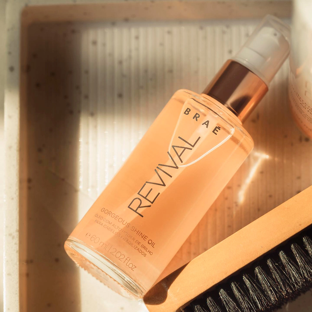 Revival Shine Oil: coloque algumas gotas do óleo na palma das mãos. Espalhe no comprimento dos cabelos até completar a absorção. Finalize como desejar