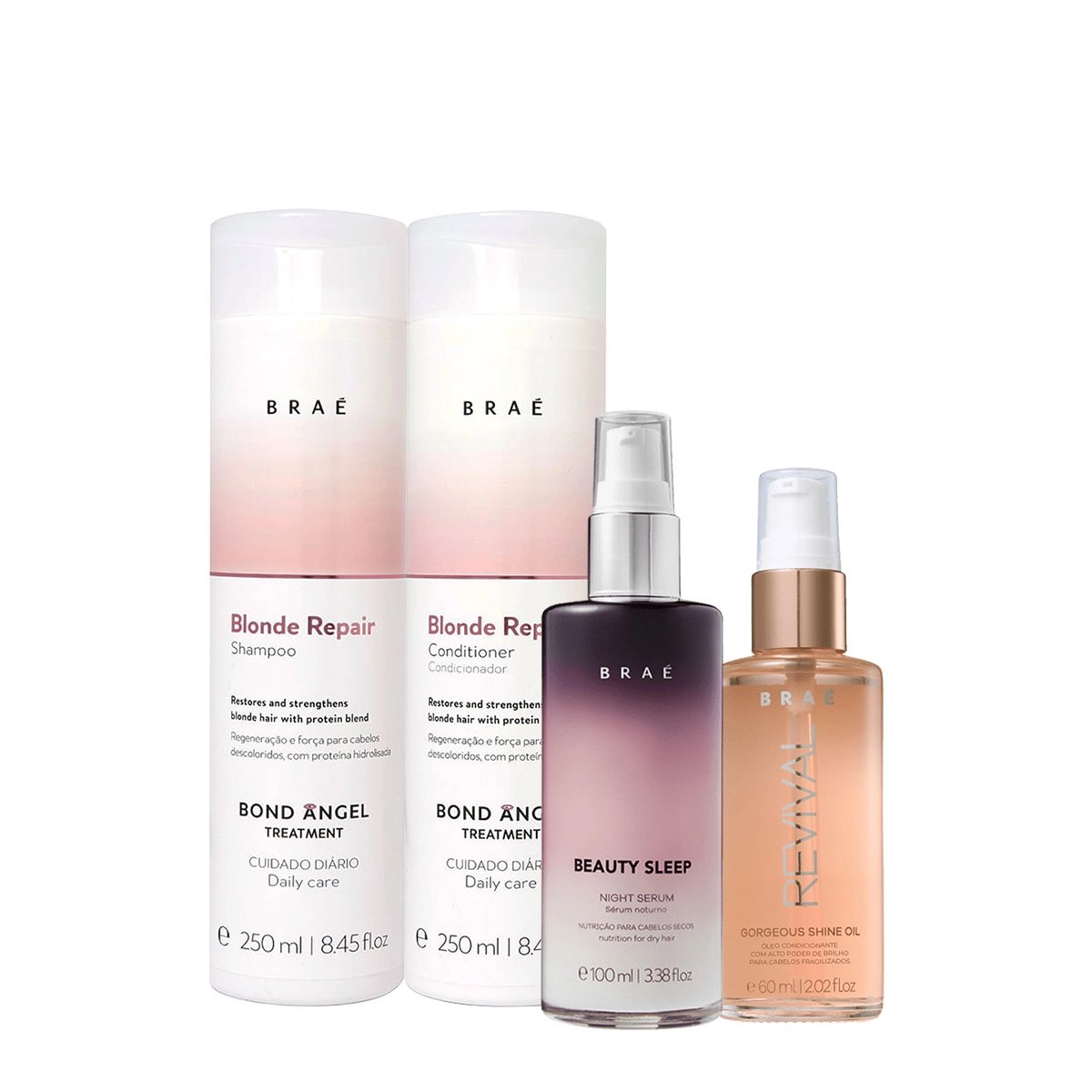 Kit Braé Blond Repair Shampoo Condicionador Beauty Sleep e Gorgeus Shine Oil (4 produtos)