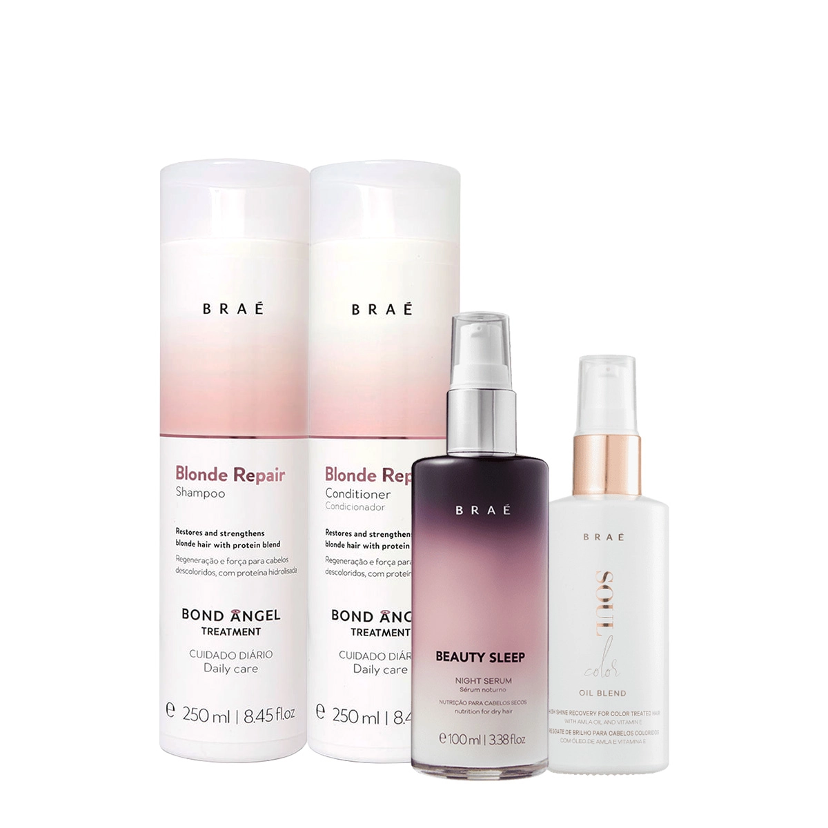 Kit Braé Blond Repair Shampoo Condicionador Beauty Sleep e Oil Blend (4 produtos)