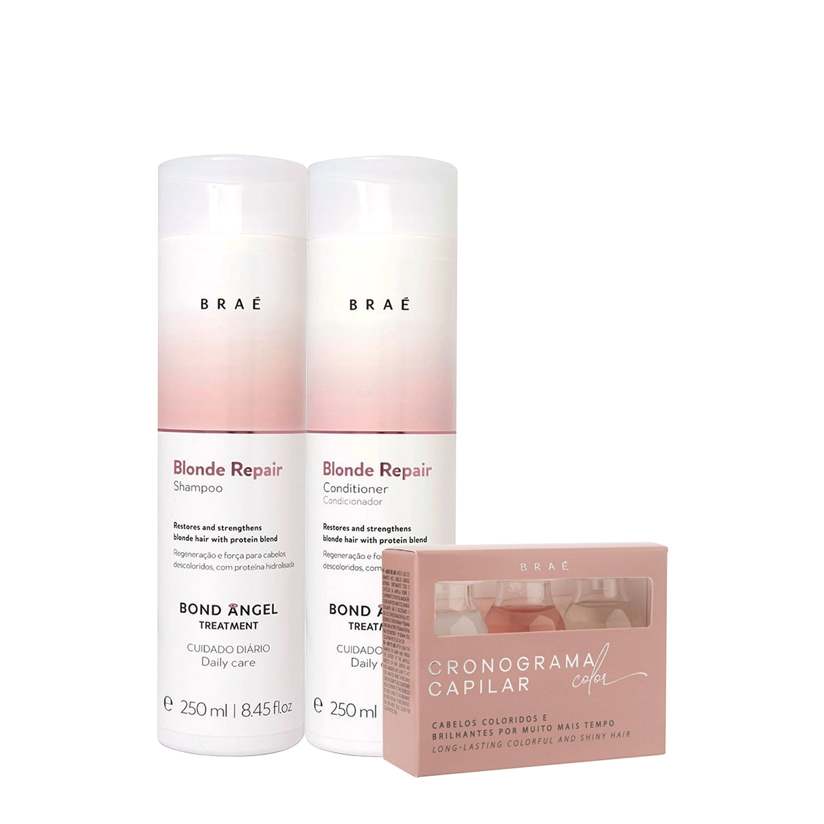 Kit Braé Blond Repair Shampoo Condicionador e Cronograma Capilar Color (3 produtos)