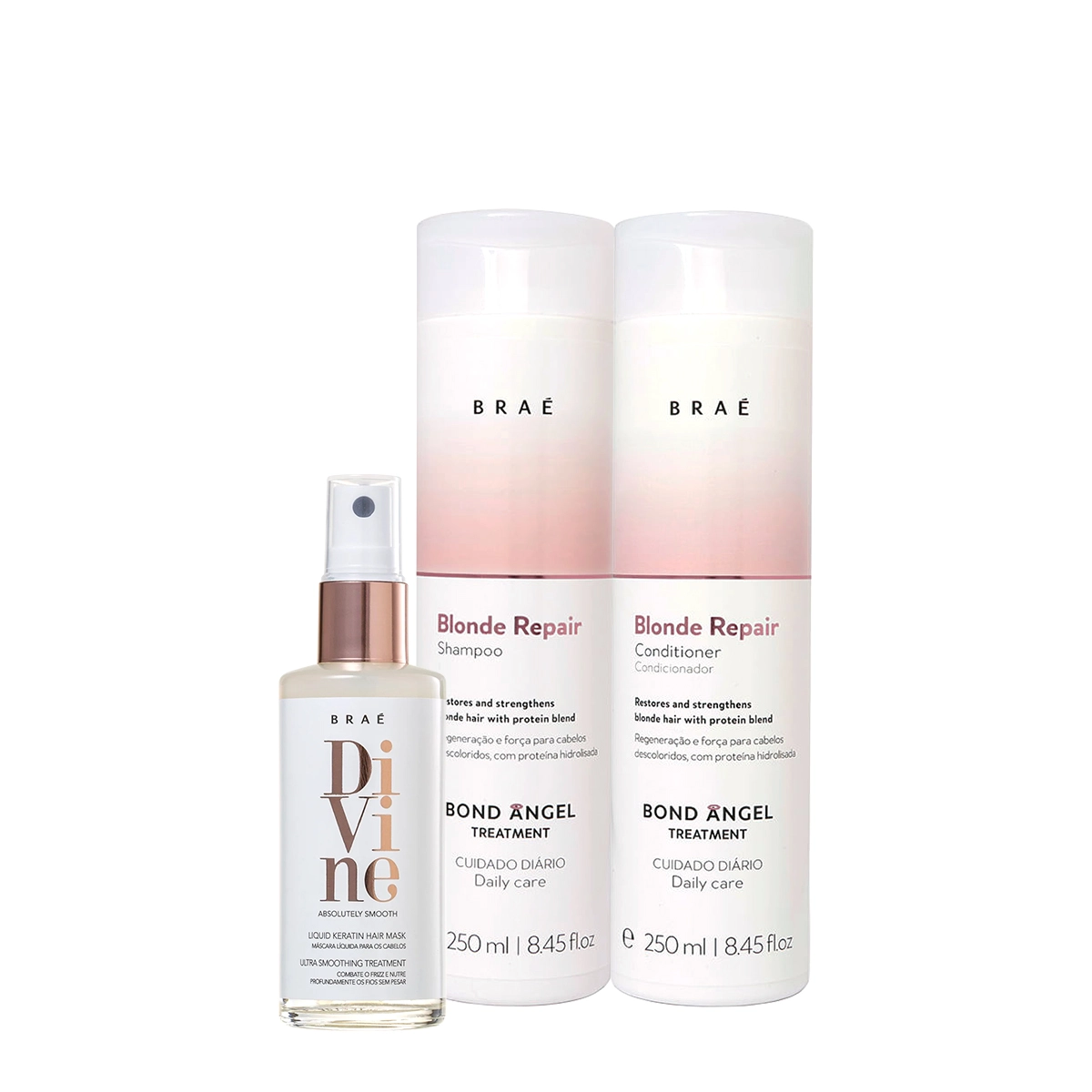 Kit Braé Blond Repair Shampoo Condicionador e Divine Máscara de Queratina Liquida (3 produtos)