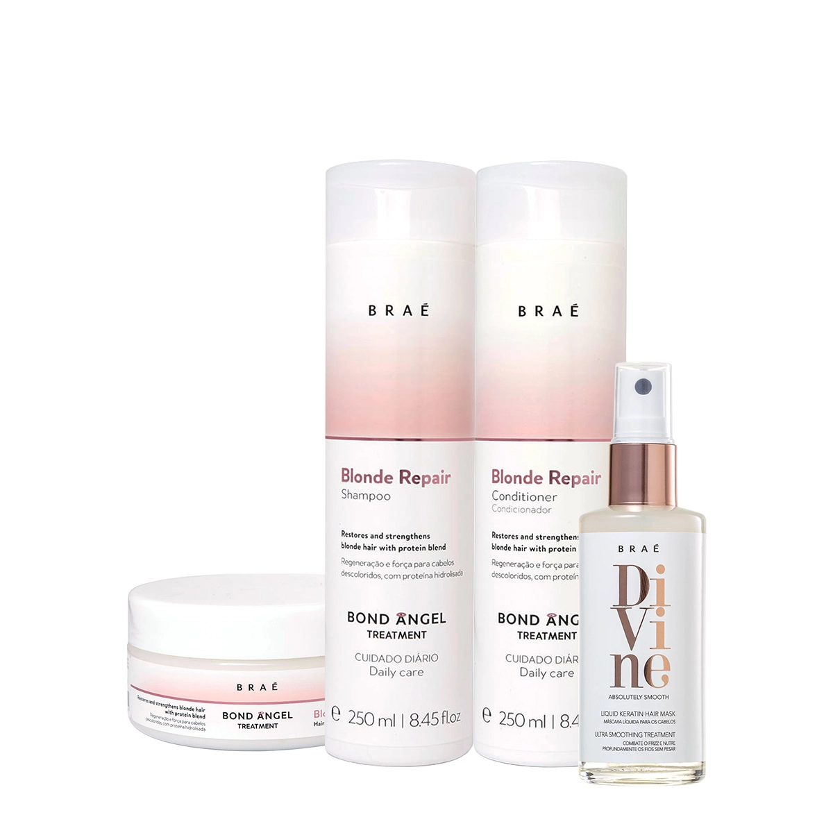 Kit Braé Blond Repair Shampoo Condicionador Máscara e Divine Máscara de Queratina Liquida (4 produtos)