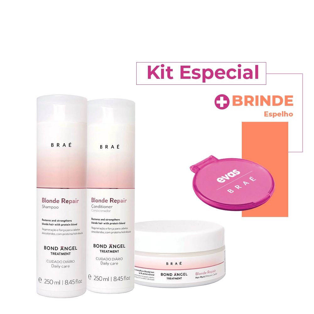 Kit Braé Blond Repair Shampoo Condicionador Máscara e Espelho Colab (4 produtos)