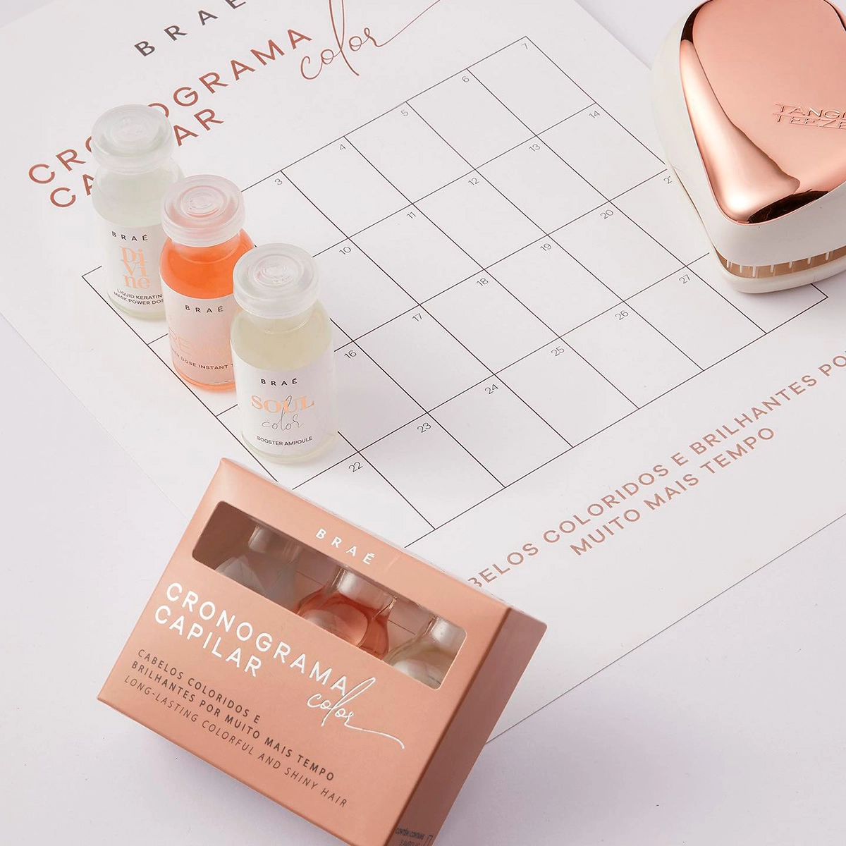 Cronograma Capilar Color: após o uso do shampoo nos cabelos úmidos, distribua diretamente todo o conteúdo da ampola sobre o comprimento e pontas. Massageie e deixe agir por 3 minutos. Enxágue totalmente. Não é necessário o uso do condicionador.