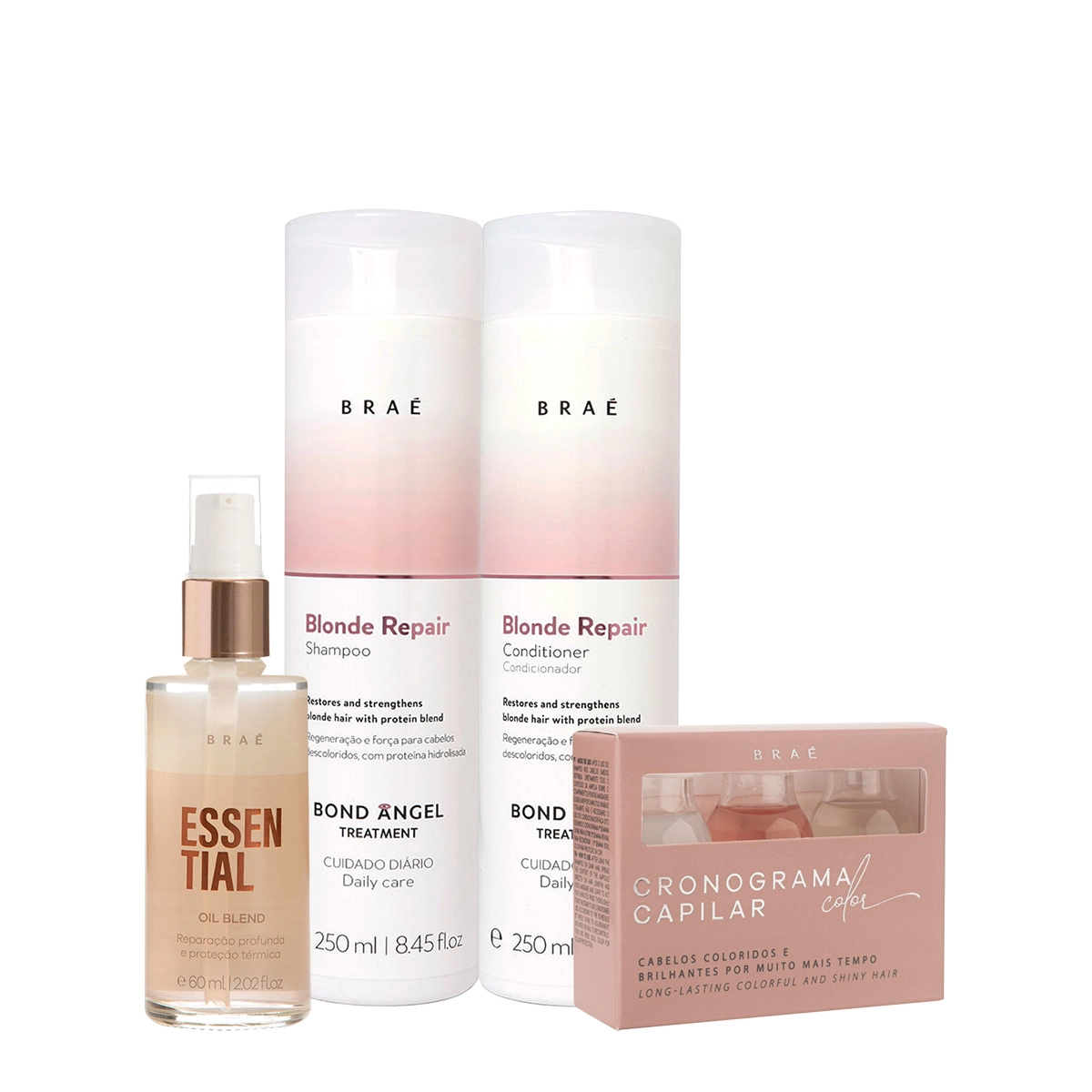 Kit Braé Blond Repair Shampoo Condicionador Oil Blend e Cronograma Capilar Color (4 produtos)