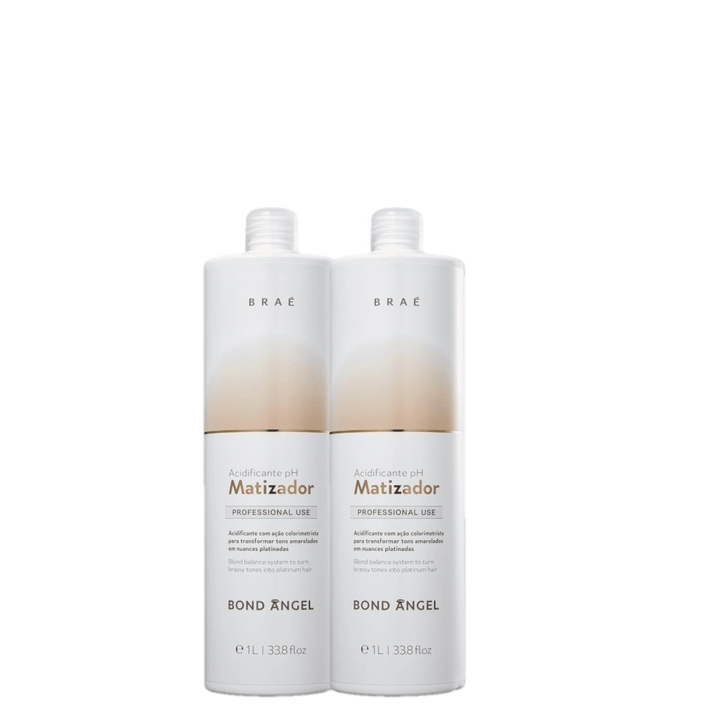 O Acidificante Matizador BRAÉ Bond Angel remove o amarelado, alinha e facilita o desembaraço dos cabelos. Assim, revela fios platinados macios, sedosos e com brilho intenso.Kit Brae Bond Angel - Matizador Acidificante Ph 1L (2 Unidades)