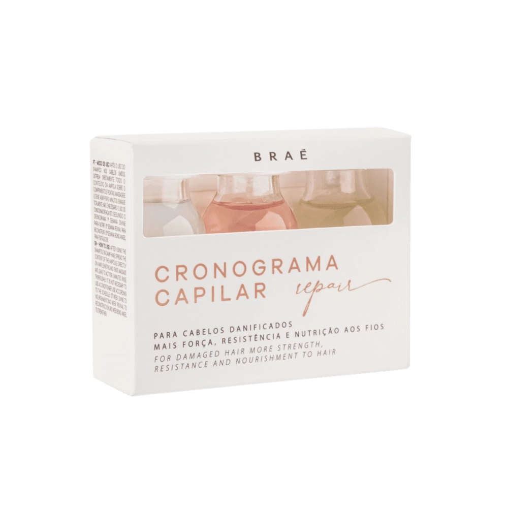 Este Kit Contém Braé Essential - Shampoo 250ml: para cabelos danificados e fragilizados, limpa e ajuda na recuperação dos fios desestruturados. Braé Essential - Máscara 500g: recupera e protege a fibra capilar para que ela fique forte, brilhante e hidratada. Age internamente nos poros do cabelo para dar estrutura às áreas danificadas. Forma uma camada protetora em torno do fio para deixar o cabelo mais brilhante e resistente, com uma vida nova. Braé Revival Gorgeus Shine Oil - Óleo Capilar 60ml: possui ação repositora lipídica, elaborado com óleos de coco, abacate e macadâmia, hidrata, nutre, sela e fortalece as pontas ressecadas, promovendo brilho intenso, maciez e vitalidade aos fios. O uso regular do produto previne a formação de pontas duplas. Pode ser usado como complemento em máscaras de nutrição. Braé Cronograma Capilar Repair - Ampolas de Tratamento 13ml cada: indicado para promover ação fortificante, reparadora, nutritiva e hidratante da fibra capilar. Deixa os cabelos mais fortalecidos, livres de frizz, revitalizados e com brilho intenso. Um tratamento de 3 semanas que contém três linhas consagradas de Braé Hair Care para cabelos mais saudáveis sempre. Máscara: após lavar o cabelo com shampoo, aplique massageando vigorosamente da raiz até as pontas. Deixe agir de 10 a 15 minutos. Enxague. Ampolas: após o uso do shampoo nos cabelos úmidos, distribua diretamente todo o conteúdo da ampola sobre o comprimento e pontas. Massageie e deixe agir por 3 minutos. Enxague totalmente. Não é necessário o uso do condicionador. FAÇA ISTO SEGUINDO O CRONOGRAMA: 1ª SEMANA: DIVINE PARA NUTRIR; 2ª SEMANA: REVIVAL PARA RECONSTRUIR; 3ª SEMANA: BOND ANGEL PARA FORTALECER. Kit Braé Essential Repair- Máscara G (4 produtos)