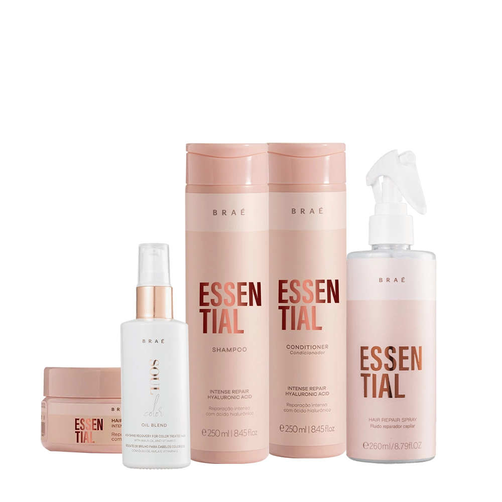 Kit Braé Essential Shampoo Condicionador Hair Spray Máscara e Soul Color Oil (5 produtos)