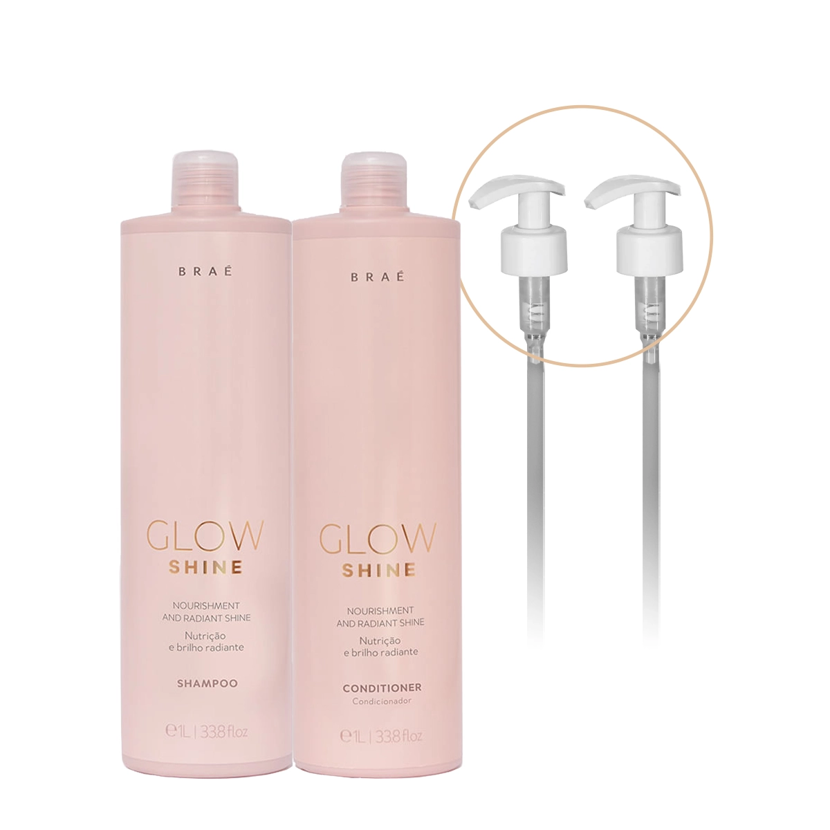 Este Kit Contém Braé Glow Shine - Shampoo 1L: limpa os fios suavemente, enquanto nutre e resgata o brilho intenso. Braé Glow Shine - Condicionador 1L: traz fórmula nutritiva que desembaraça e resgata o brilho intenso dos fios. Válvula Pump para 1L (2 unidades): dosadora auxilia você a controlar o uso dos seus produtos e evitar o desperdício. Conselho de Aplicação Shampoo: aplique no cabelo molhado, massageando suavemente sem esfregar os fios. Enxágue.Kit Braé Glow Shine Duo Válvula (4 produtos)