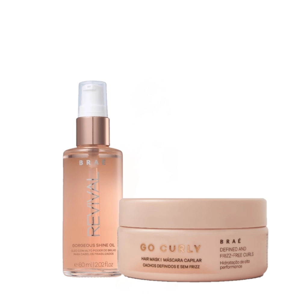 GO CURLY possui uma associação equilibrada de ingredientes que permite a ação profunda e multifuncional nos cabelos cacheados e ondulados. Não possui silicones, petrolatos, parabenos e pode ser classificado como método Low Poo. Uma potente e inovadora combinação de ativos, traz hidratação imediata e de alto desempenho aos fios ondulados e cacheados. Cachos definidos, redução de frizz, proteção do couro cabeludo, fios maleáveis e com movimento natural. BRAÉ Revival Gorgeous Shine Oil, Óleo para cabelos danificados e fragilizados, nutre e fortalece as pontas, além de devolver a vitalidade aos fios. Kit Contem: Braé Go Curly Mascara Condicionante 200g Braé Revival Gorgeous Shine - Óleo Capilar 60ml COMO USAR Conselho de aplicação Sobre os cabelos limpos e úmidos, aplique uma quantidade generosa da máscara GO CURLY, enluvando, mecha a mecha, da raiz às pontas. Deixe agir de 5 a 10 minutos e enxágue. Coloque algumas gotas do óleo na palma das mãos. Espalhe no comprimento dos cabelos até completar a absorção. Finalize como desejar. Ativos Principais Sua formulação é composta por um Blend de Óleos Vegetais, Manteiga de Manga, Extrato de Linhaça, Lipídeos Biomiméticos, Proteínas, Leite de Coco Vetorizado com Algas e Esqualano Vegetal.Kit Brae Go Curly Duo Shine Hidratante (2 Produtos)