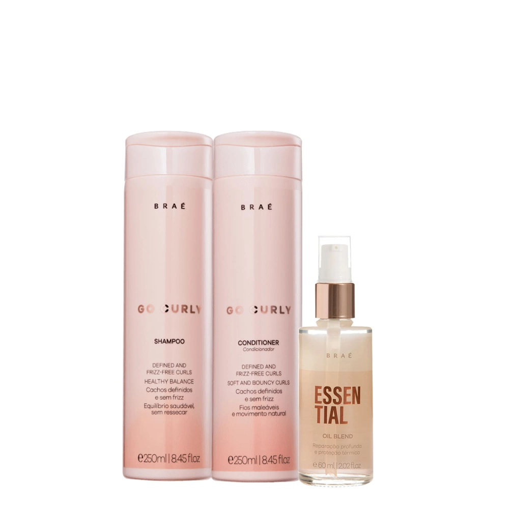 Kit Braé Go Curly Shampoo Condicionador e Essential Oil Blend (3 produtos)