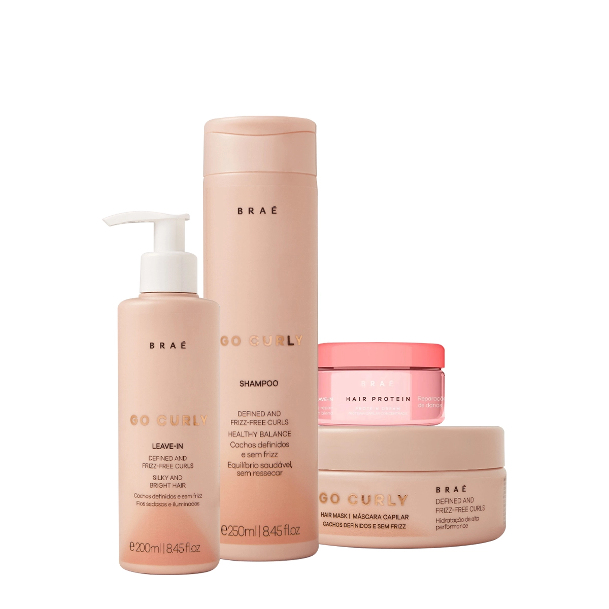Kit Braé Go Curly Shampoo Máscara Leave-in e Hair Protein (4 produtos)
