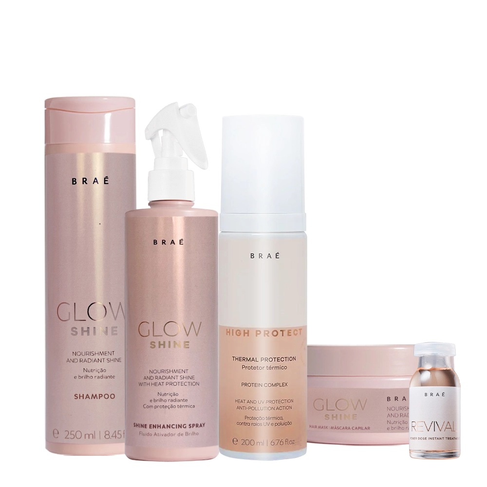 Kit Braé High Protect Thermal Glow Shine Shampoo Máscara Ativador de Brilho e Ampola (5 produtos)