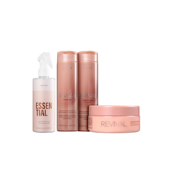 Kit Braé Revival Shampoo 250ml + Condicionador 250ml + Máscara Revival 200g + Essential 260ml