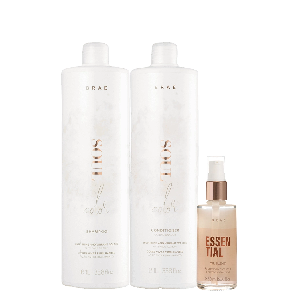 Kit Braé Soul Color Shampoo Condicionador Litro e Essential Oil Blend (3 produtos)
