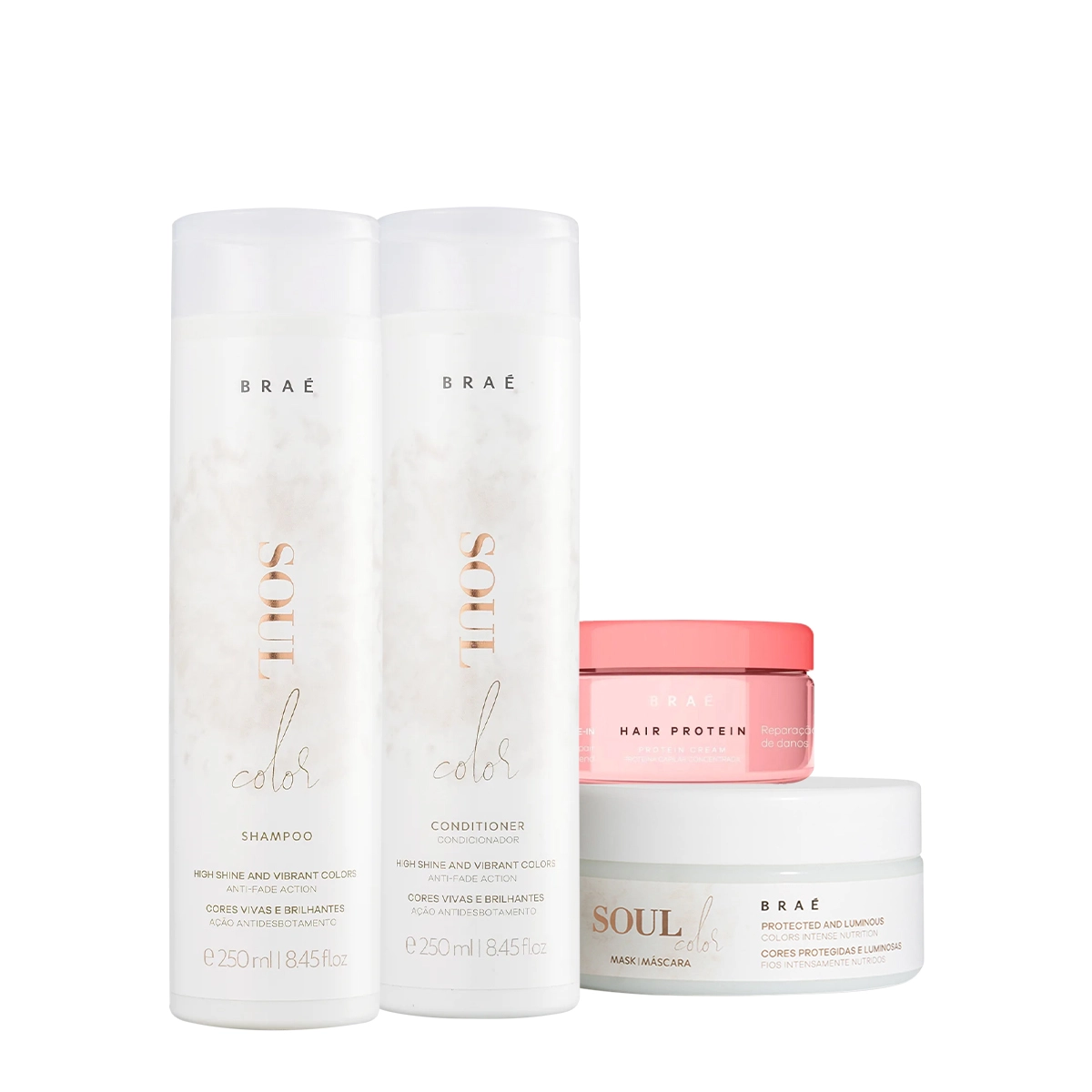 Kit Braé Soul Color Shampoo Condicionador Máscara e Hair Protein (4 produtos)