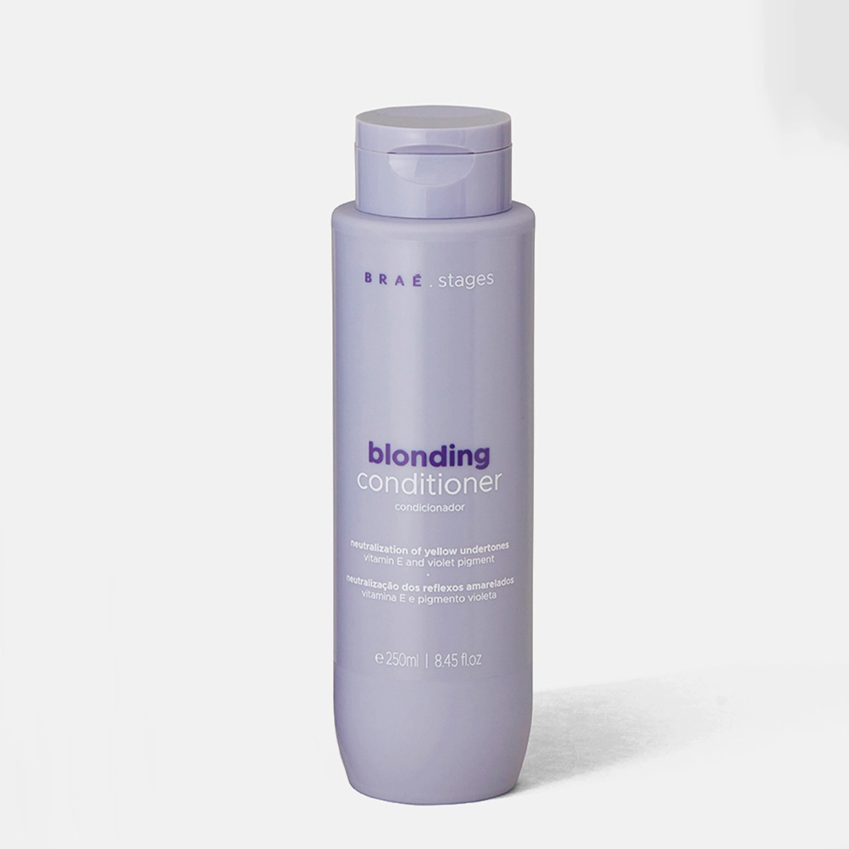 Este Kit Contém Braé Stages Blonding - Shampoo 250ml: para cabelos loiros ou descoloridos. Limpa e trata os fios de forma eficaz, realçando a cor dos cabelos claros. Seu efeito matizador proporciona loiros mais saudáveis, vibrantes e iluminados por mais tempo. Braé Stages Blonding - Condicionador 250ml: para cabelos loiros ou descoloridos. Braé Stages Blondig transforma os seus cabelos loiros rapidamente, neutralizando os reflexos amarelados e alaranjados sem manchar os fios. Sua fórmula leve e suave condiciona e trata, realçando a cor e deixando seu loiro mais saudável, vibrante e iluminado por muito mais tempo. Braé Stages Blonding - Máscara Capilar 200g: para cabelos loiros ou descoloridos. Desenvolvida especialmente para tratar e revitalizar as madeixas. Realça a cor dos cabelos claros, tratando e neutralizando os reflexos amarelados, sem comprometer a integridade dos fios. Fórmula intensamente hidratante, proporciona nutrição profunda, deixando seus cabelos loiros mais saudáveis, luminosos e radiantes como nunca. Braé Stages Treatment Multi - Leave-in Condicionante 260ml: para todos os tipos de cabelo, especialmente os fios finos. O leave-in condicionante é uma névoa leve que nutre delicadamente e protege os fios, reduzindo pontas duplas e frizz. Conta com proteção térmica, óleo de babaçu, pantenol e vitamina E. Cabelo hidratado, sedoso e com muito mais brilho. Braé Stages Treatment Oil Blend - Óleo Capilar 35ml: para todos os tipos de cabelo. Com ação hidratante, reduz e repara pontas duplas. Formulado com ingredientes nobres, trata dos fios diariamente, combatendo o frizz e protegendo os fios do valor. Seus fios muito mais saudáveis e radiantes. Conselho de AplicaçãoKit Braé Stages Blonding Hair Care Total (5 produtos)