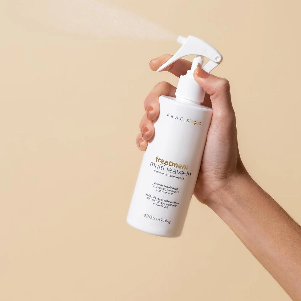Este Kit Contém Braé Stages Treatment Multi - Leave-in Condicionante 260ml: para todos os tipos de cabelo, especialmente os fios finos. O leave-in condicionante é uma névoa leve que nutre delicadamente e protege os fios, reduzindo pontas duplas e frizz. Conta com proteção térmica, óleo de babaçu, pantenol e vitamina E. Cabelo hidratado, sedoso e com muito mais brilho. Kit Braé Stages Treatment Blend Oil Multi Leave-in (2 produtos)