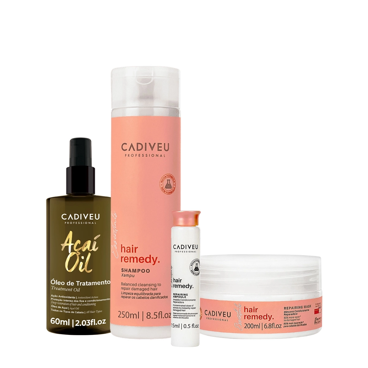 Kit Cadiveu Essentials Hair Remedy Shampoo Máscara Ampola e Açaí Oil 60 (4 produtos)