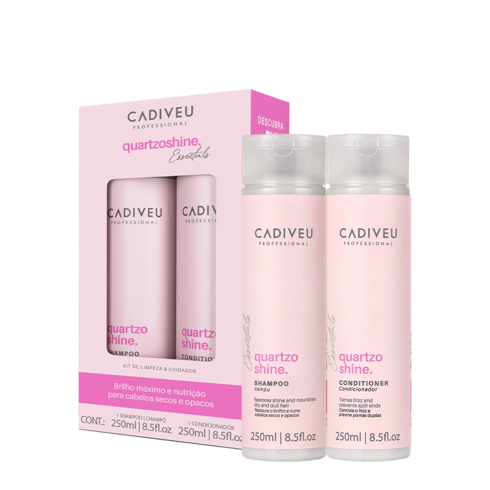 Kit Cadiveu Essentials Quartzo Shine Hair (2 Produtos) Kit com shampoo e condicionador para cabelos secos e opacos. É um tratamento diário poderoso para o hair care, limpando sem ressecar e condicionando sem pesar. Também aumenta a maciez e facilita o desembaraço e combate o ressecamento e garante brilho intenso, graças a sua formulação que promove a nutrição suave dos fios e sua textura leve que proporciona leveza e movimento Esse Kit Contém Cadiveu Essentials Quartzo Shine - Condicionador 250ml: nutre na medida certa sem pesar, com textura cremosa para facilitar o desembaraço. Conselho de Aplicação