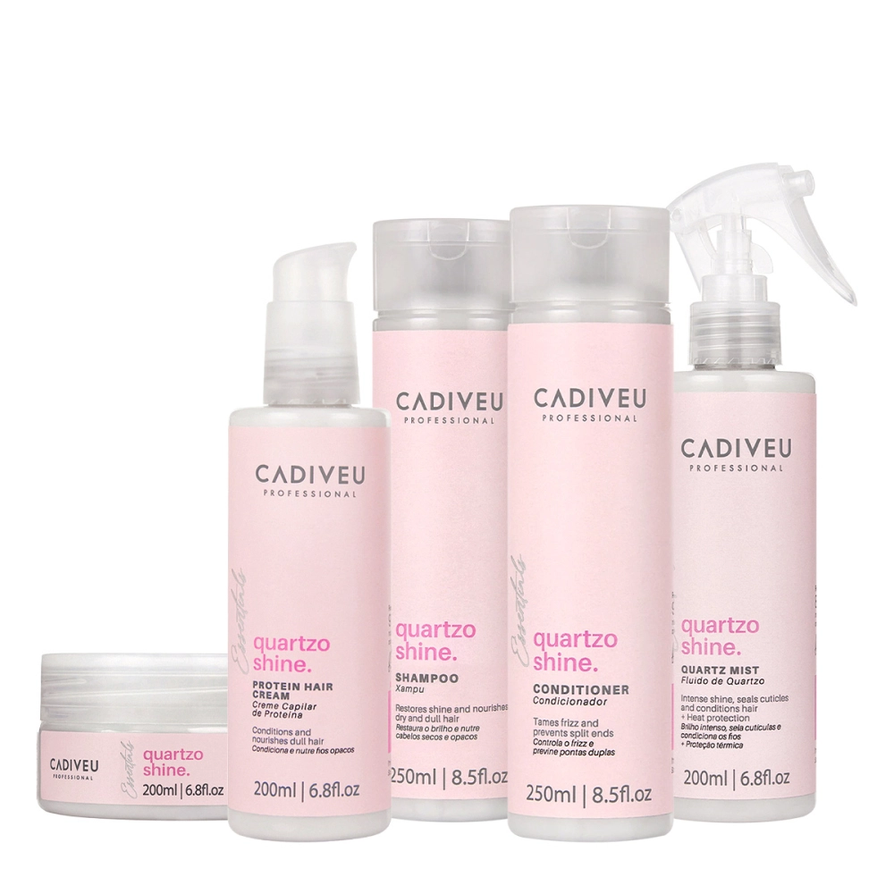 Kit Cadiveu Essentials Quartzo Shine Shampoo Condicionador Fluído Máscara e Protein Hair Cream (5 produtos)