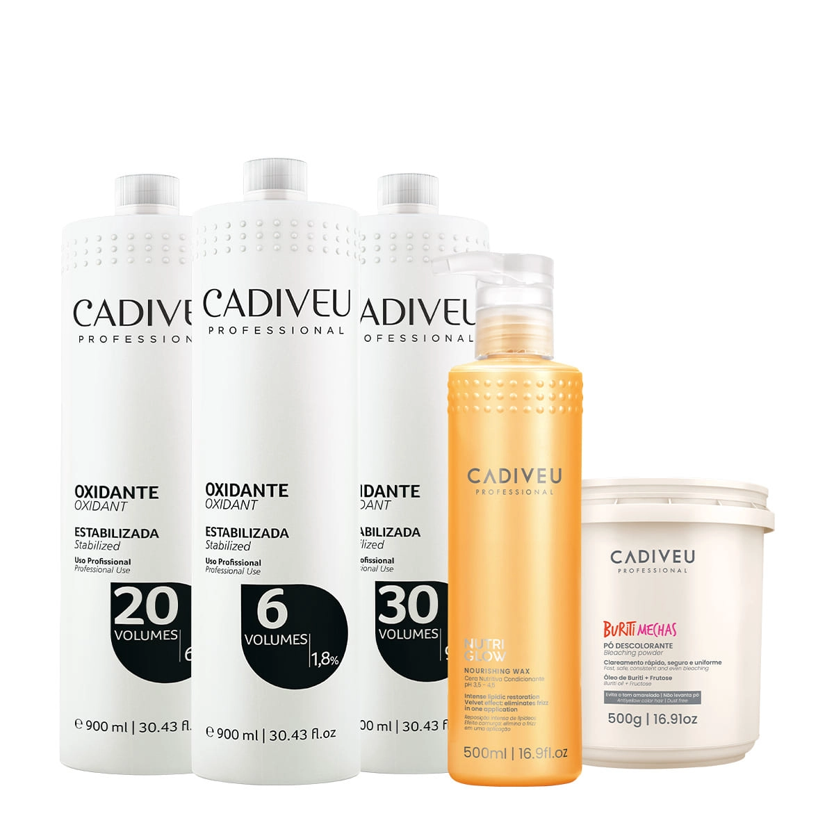 Kit Cadiveu Oxidante 6V 20V 30V Pó Descolorante e Cera Nutritiva (5 produtos)