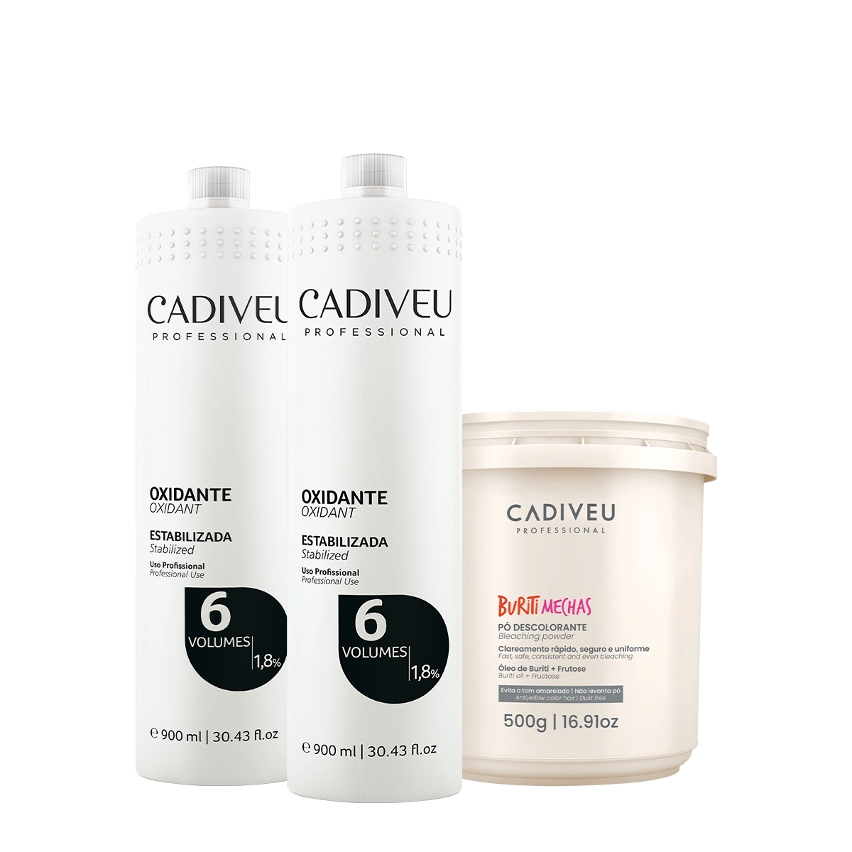 Esse Kit Contém Cadiveu Buriti Mechas - Pó Descolorante 500g: ideal para todas as técnicas. Sua descoloração progressiva permite total uniformidade e regularidade. Oferece ao profissional diversas possibilidades de clareamento. Garante o máximo de eficácia, respeito à natureza dos fios e clareamento em tons frios, devido à exclusiva tecnologia anti-yellow. Cadiveu Professional 6V - Oxidante 900ml (2 unidades): permite uma revelação eficiente e uniforme dos pigmentos. São estabilizados com 1,8% de Peróxido de Hidrogênio que associada à coloração permite uma revelação eficaz e uniforme dos pigmentos, sendo utilizada para tonalização dos fios, deixando o cabelo macio e sem perder o balanço. Conselho de AplicaçãoKit Cadiveu Professional Buriti Mechas e Oxidante 6v (3 produtos)