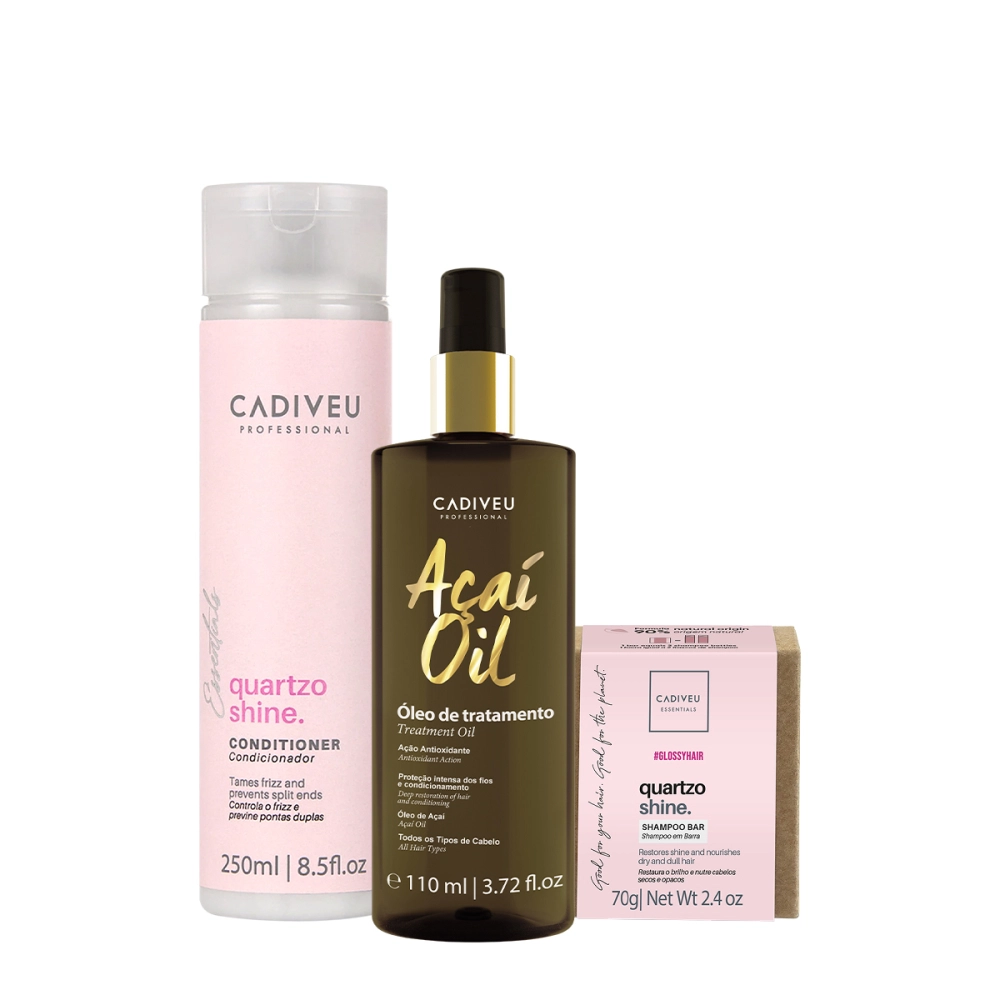 Kit Cadiveu Professional Essentials Quartzo Shine Shampoo em Barra Condicionador e Açaí Oil 110 (3 produtos)