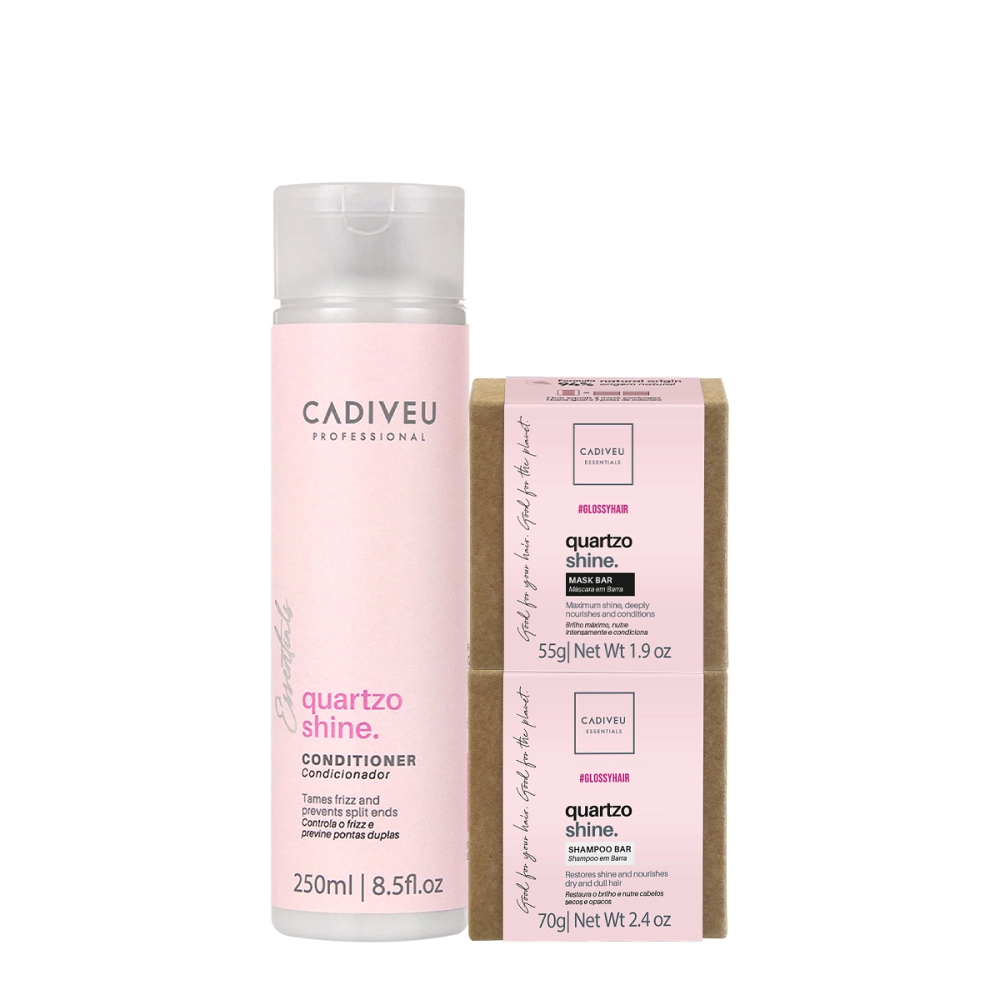 Kit Cadiveu Professional Essentials Quartzo Shine Shampoo em Barra Condicionador e Máscara em Barra (3 produtos)