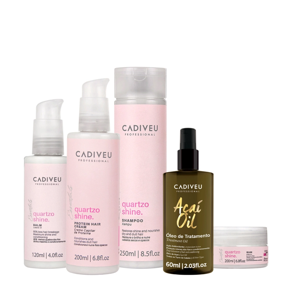 Kit Cadiveu Professional Essentials Quartzo Shine Shampoo Máscara Pré-Shampoo Leave-in e Açaí Oil 60 (5 produtos)