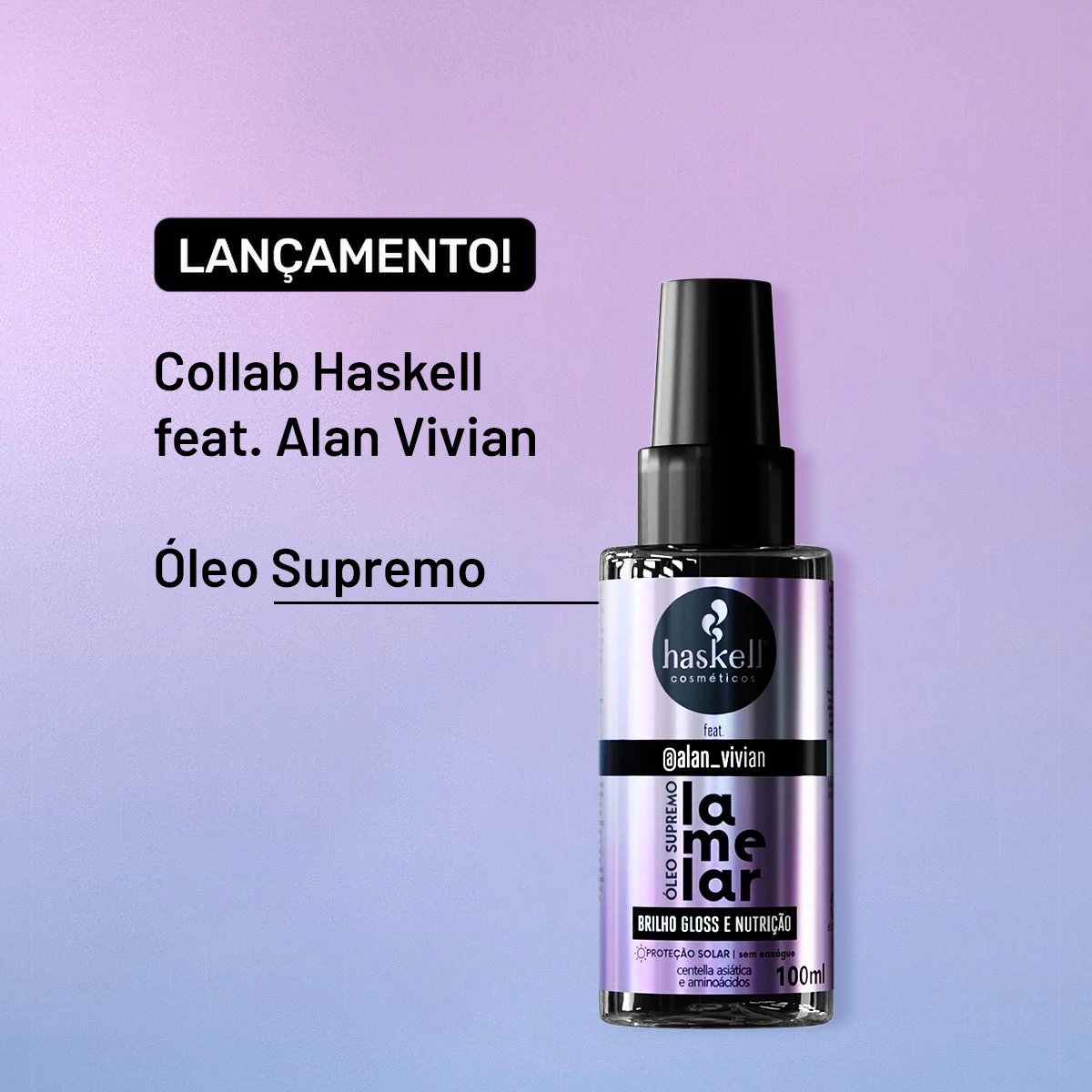 Para finalizar: nos cabelos úmidos ou secos, aplique uma quantidade suficiente do óleo na palma das mãos e espalhe uniformemente, do comprimento às pontas. Sem enxágue.