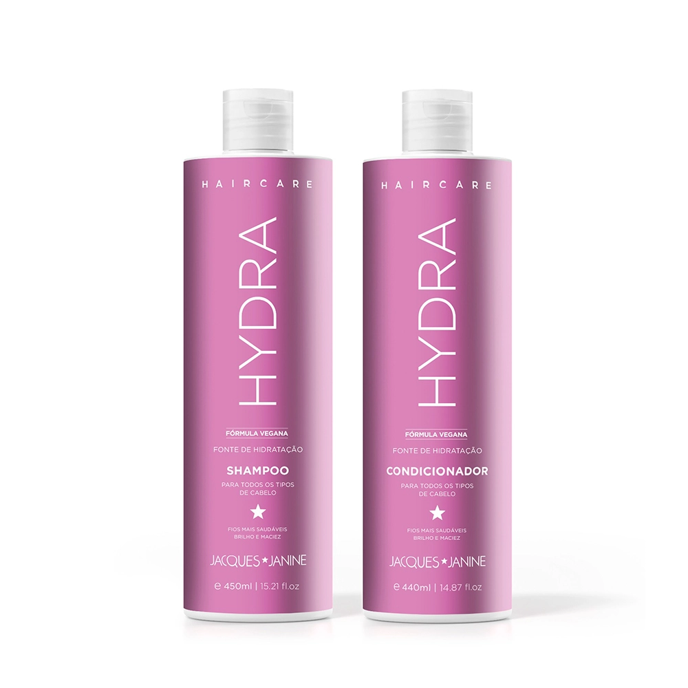 Hair care Hydra Foi especialmente desenvolvida para cabelos que necessitam de hidratação. Sua formula Contém Hydra 360° Que através da exclusiva tecnologia matriz 3d, libera os ativos de forma sequencial e controlada, auxiliando na hidratação e proporcionando melhor eficácia do produto. Jacques Janine Professionnel Haircare Hydra – Shampoo 450ml Conselho de AplicaçãoKit Jacques Janine Professionnel Haircare Hydra Shampoo e Condicionador (2 produtos)