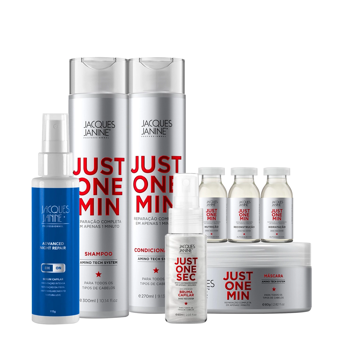 Kit Jacques Janine Professionnel Just One Min Cronograma Capilar Completo e Night Sérum (8 produtos)