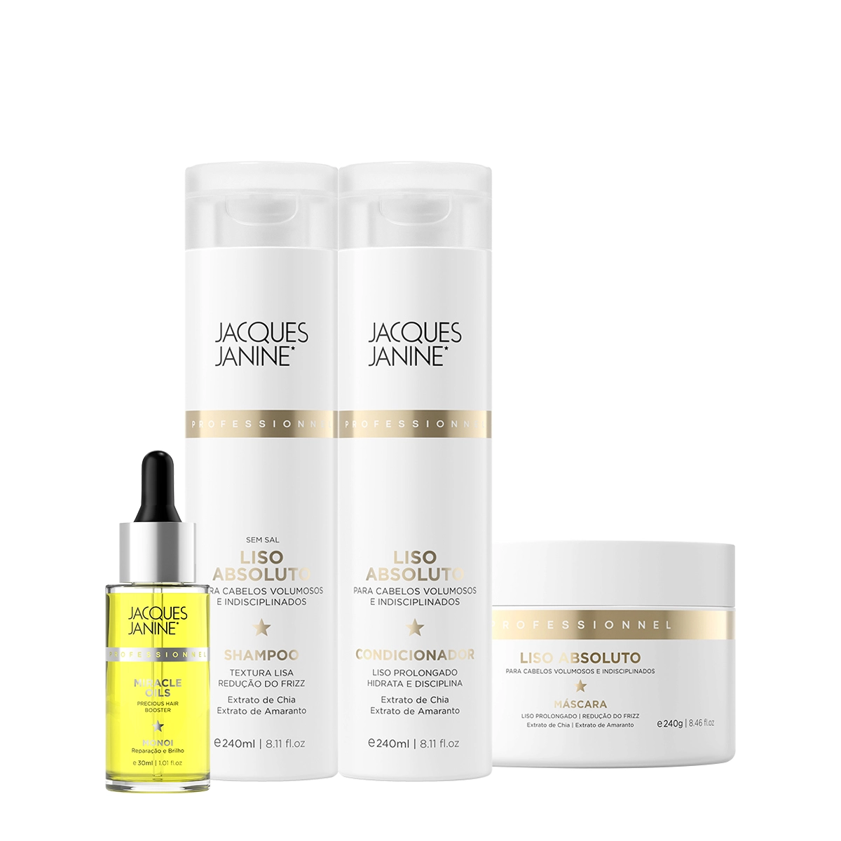 Kit Jacques Janine Professionnel Liso Absoluto Shampoo Condicionador Máscara e Oils Monoi (4 produtos)